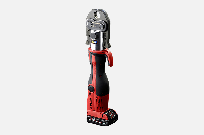 Die Novopress ACO203 ist eine Akku-Pressmaschine mit Brushless-Motortechnologie. Durch das geringe Gewicht und das optimierte Design erleichtert die handliche ACO203 das Arbeiten über Kopf. Auch bei schwierigen Lichtverhältnissen punktet die Pressmaschine mit ihrer Pressstellenbeleuchtung. Die innovative Motortechnologie ermöglicht bis zu 40 % mehr Verpressungen pro Akkuladung im Vergleich zum Vorgänger.